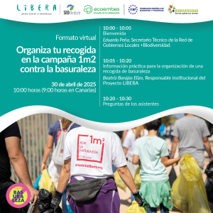 La Red de Gobiernos Locales +Biodiversidad, Ecoembes y SEO/BirdLife organizan la jornada “Organiza tu recogida en la campaña 1m2 contra la basuraleza” el próximo 30 de abril de 2025, a las 10:00 horas (peninsular). La jornada, en formato virtual, tiene por objetivo proporcionar información práctica para la organización de una recogida de basuraleza en los municipios españoles.